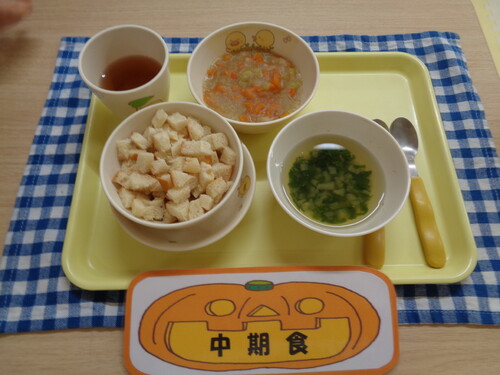 午後おやつ・・・ほうじ茶、おかかおにぎり