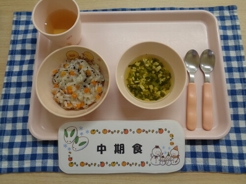 午後おやつ・・・牛乳、かぼちゃケーキ