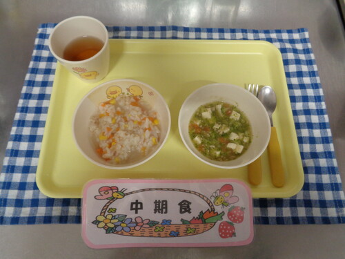 午前おやつ・・・ほうじ茶、ヨーグルト