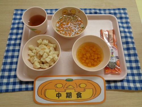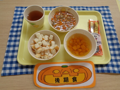 午後おやつ・・・ほうじ茶、じゃこおにぎり