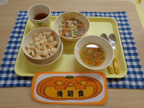 午後おやつ・・・ほうじ茶、ゆかりごはん