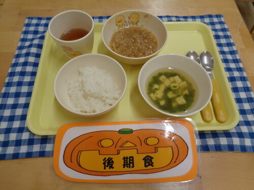 午前おやつ・・・牛乳、みかん缶