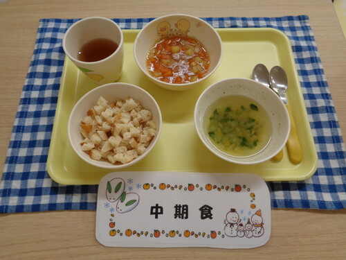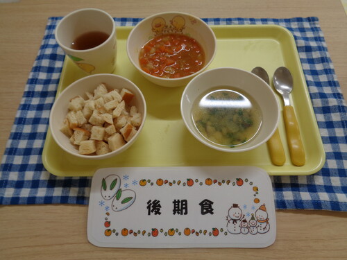 午後おやつ・・・ほうじ茶、おかかおにぎり